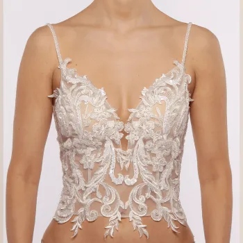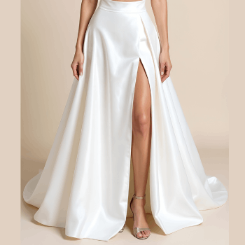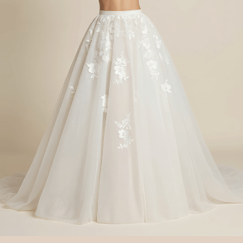 Each part of your dress connects seamlessly through a patented zipper and hook system, giving you the freedom to transform your gown while keeping the feeling of a single, elegant design.