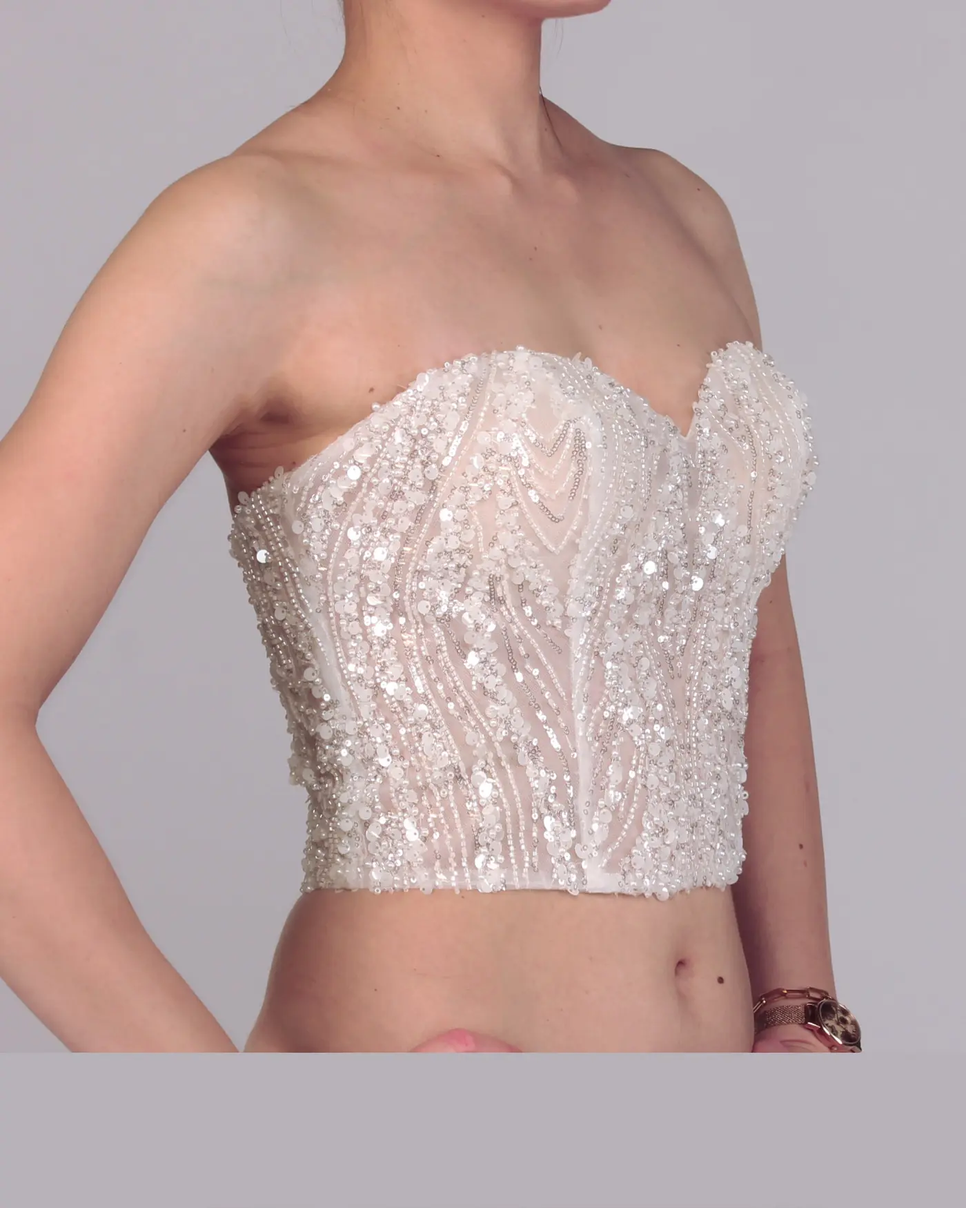 Brautmode Düsseldorf | Schulterfreies Brauttop | Perlenbesetztes Brauttop | Modulare Brautmode