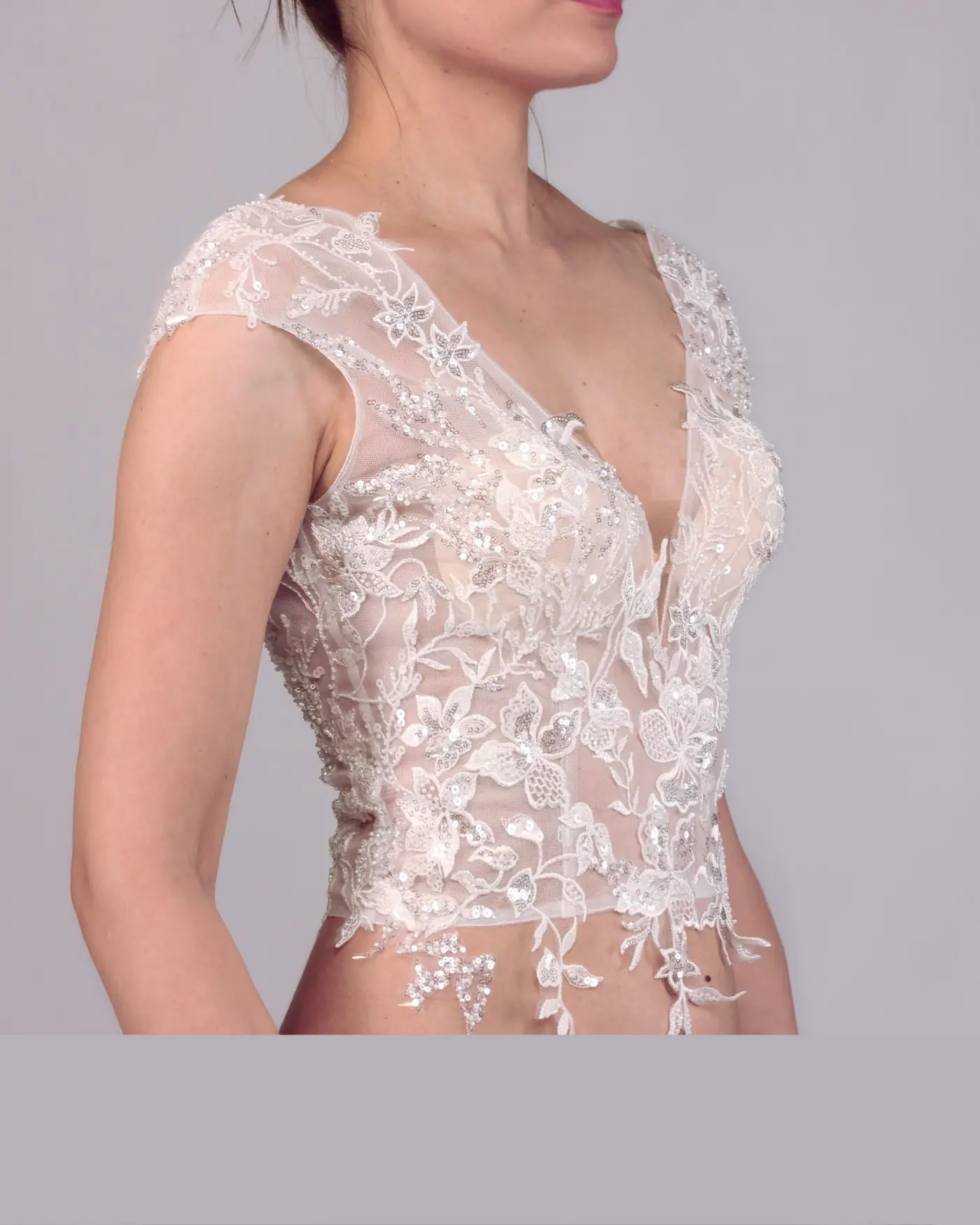 Bridal Fashion Düsseldorf | Lace Bridal Top with Wide Straps | Pearl Bridal Top | Modular Bridalwear