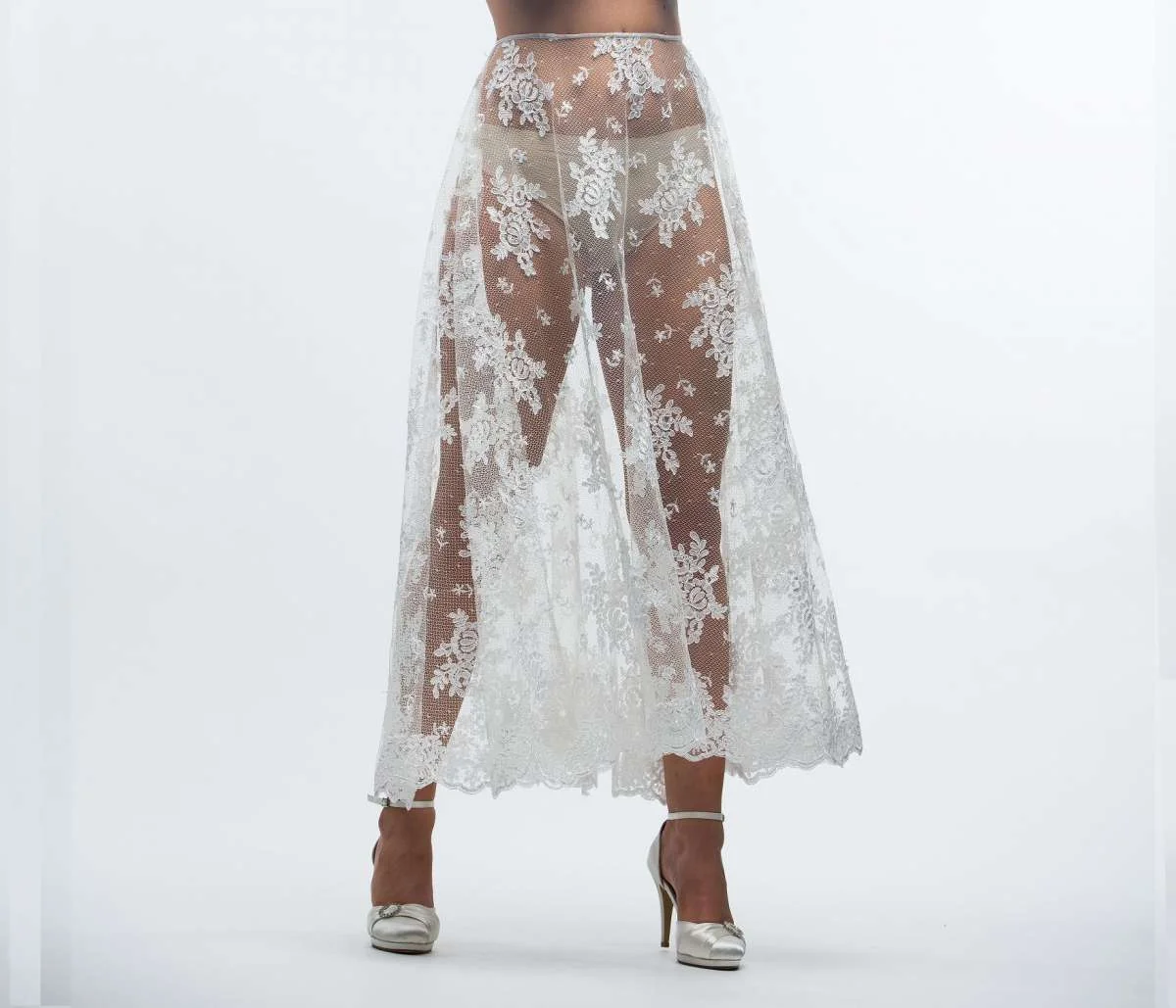 Agatha-90 ist ein romantischer Make Up Rock aus Vintage-Spitzentüll mit einer Länge von 90 cm. Die zarte „Charme“-Spitze und die A-Linien-Silhouette verleihen dem Design eine zeitlose, feminine Eleganz.
