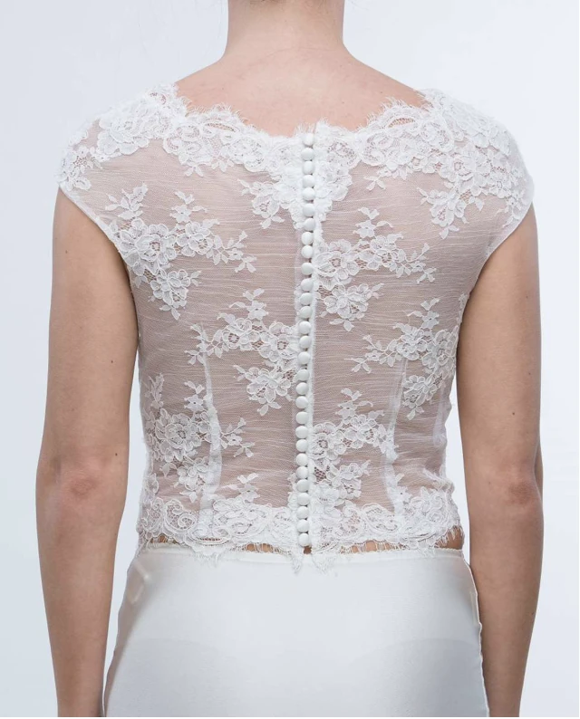 Alivia ist ein wunderschönes Make Up Top aus Spitze im Boho-Vintage-Stil, das sich wie eine zweite Haut anschmiegt. Zahlreiche Knöpfe am Rücken verleihen dem Design eine elegante, feminine Note.