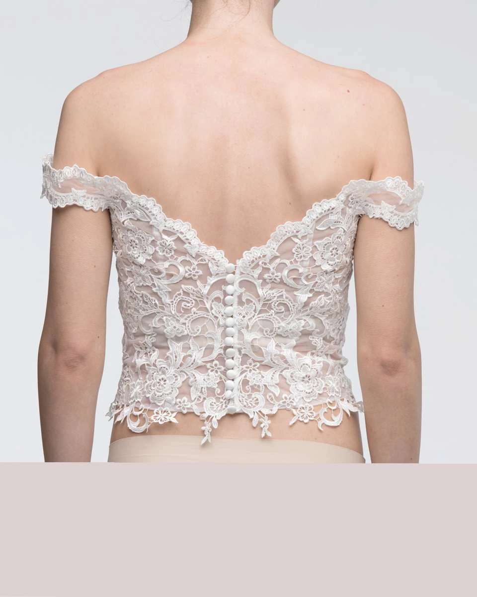 Demetria Make Up Top – Romantisches Brauttop aus Spitze mit Carmen-Ausschnitt