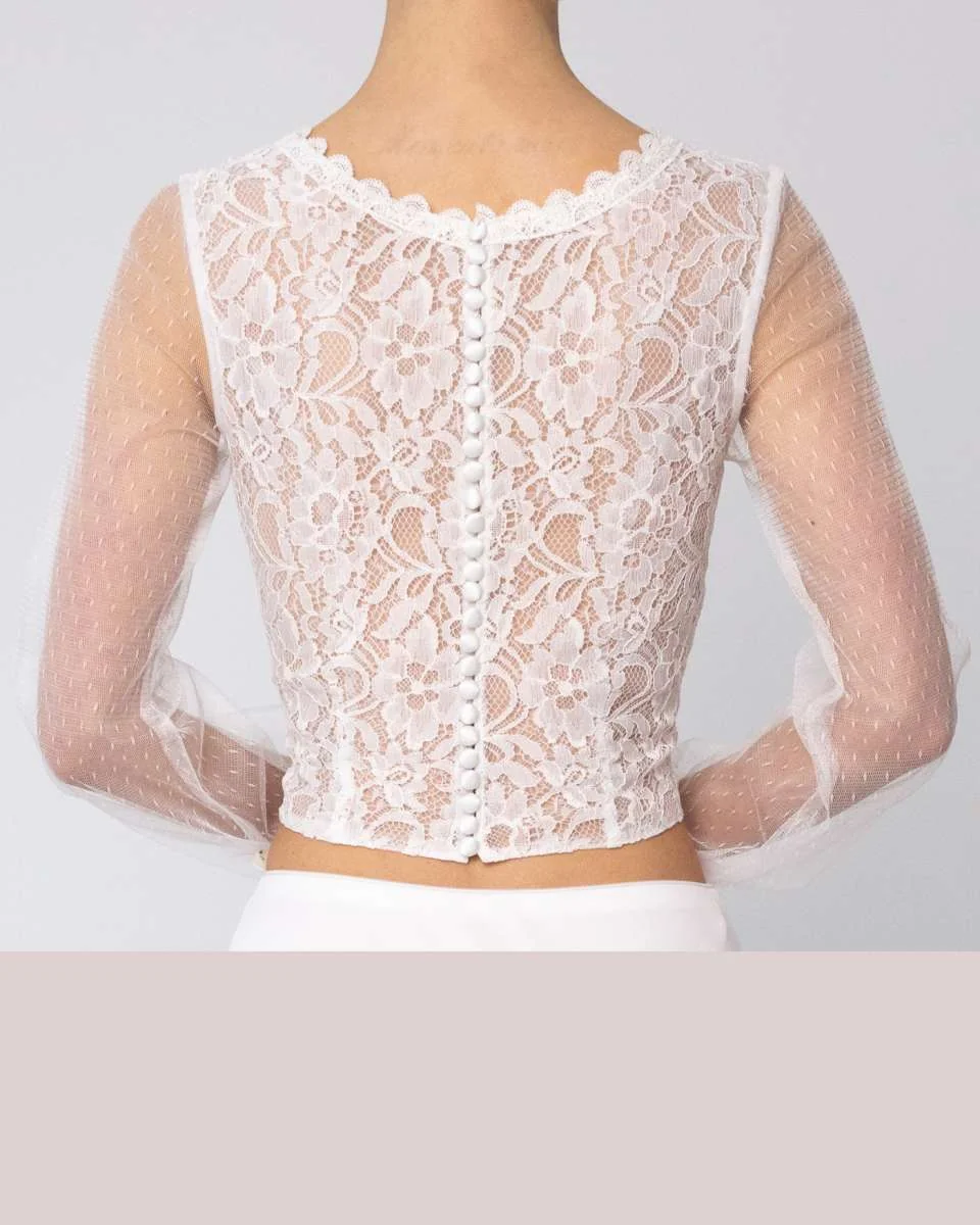 Vintage-Spitzen-Brauttop Ellen mit langen Ärmeln | Boho Brautmode | Düsseldorf