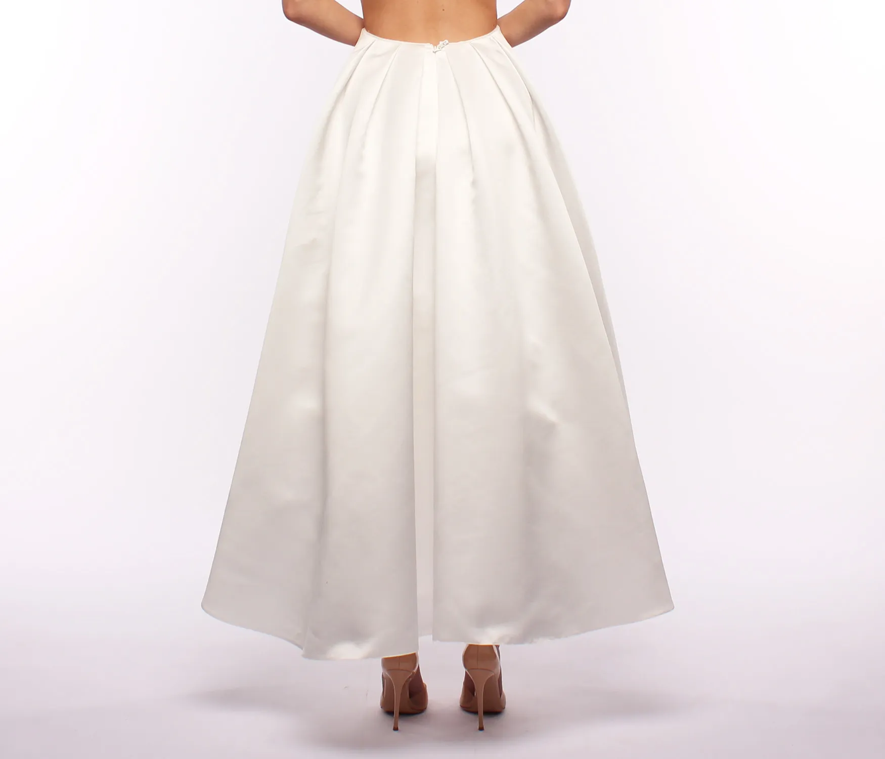 Find your style with the Arizona – 90 Basic Skirt – a timeless A-line bridal skirt made from luxurious satin or mikado, featuring elegant box pleats and integrated pockets.