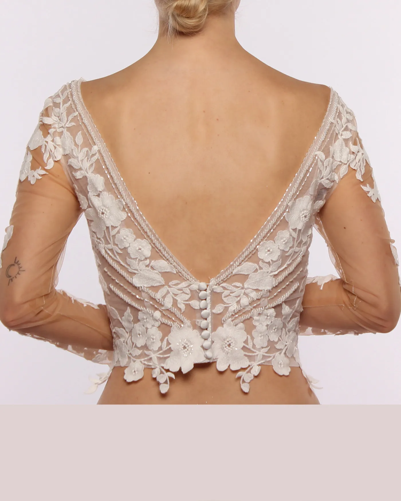The Liyana Makeup Top brings feminine elegance and refined detail to your modular bridal look.