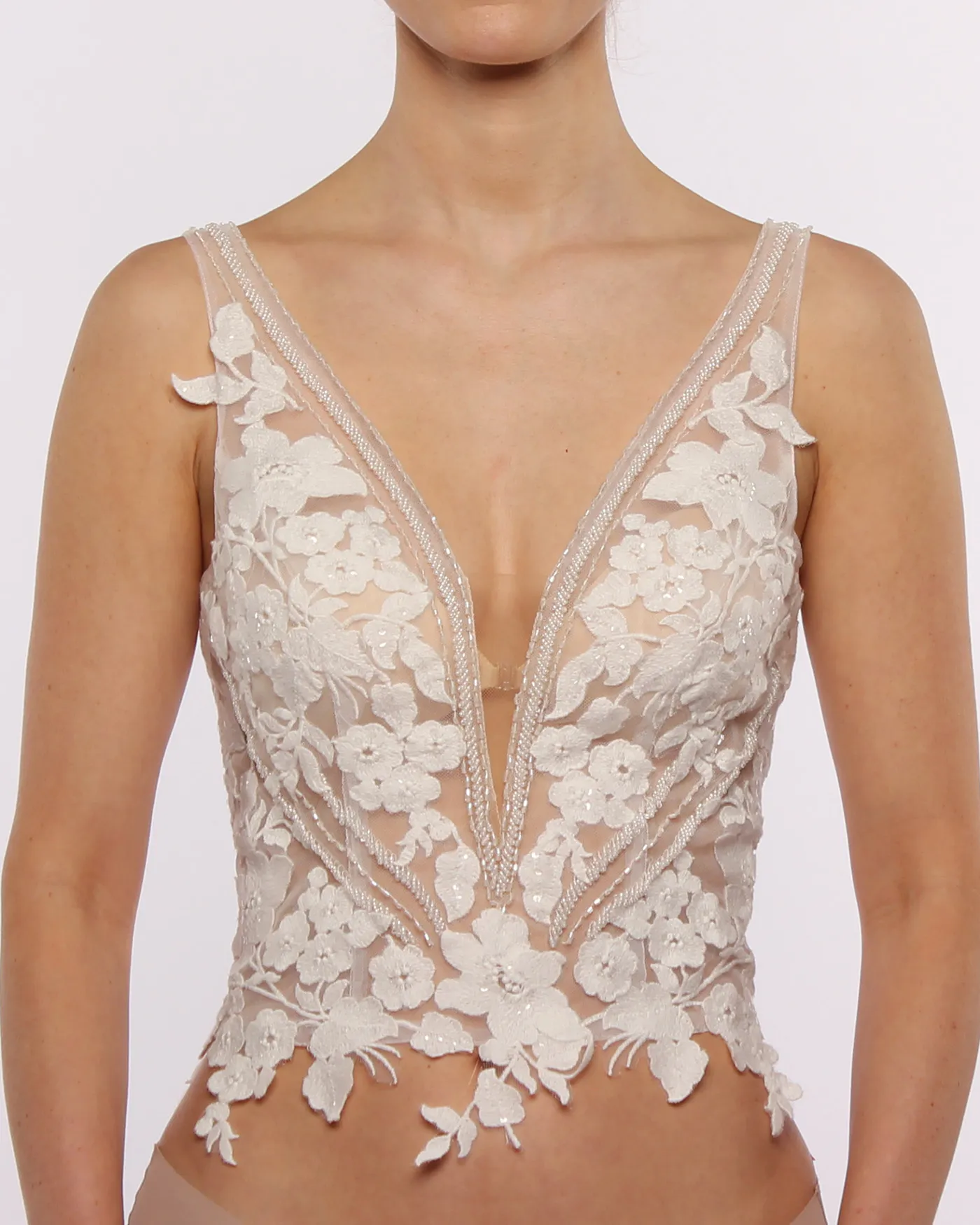 • Modular & transformable (miXme System) – wear Melinda solo or combine it with a Basic Skirt, Makeup Skirt, or other mixme elements to create your personalized bridal outfit.