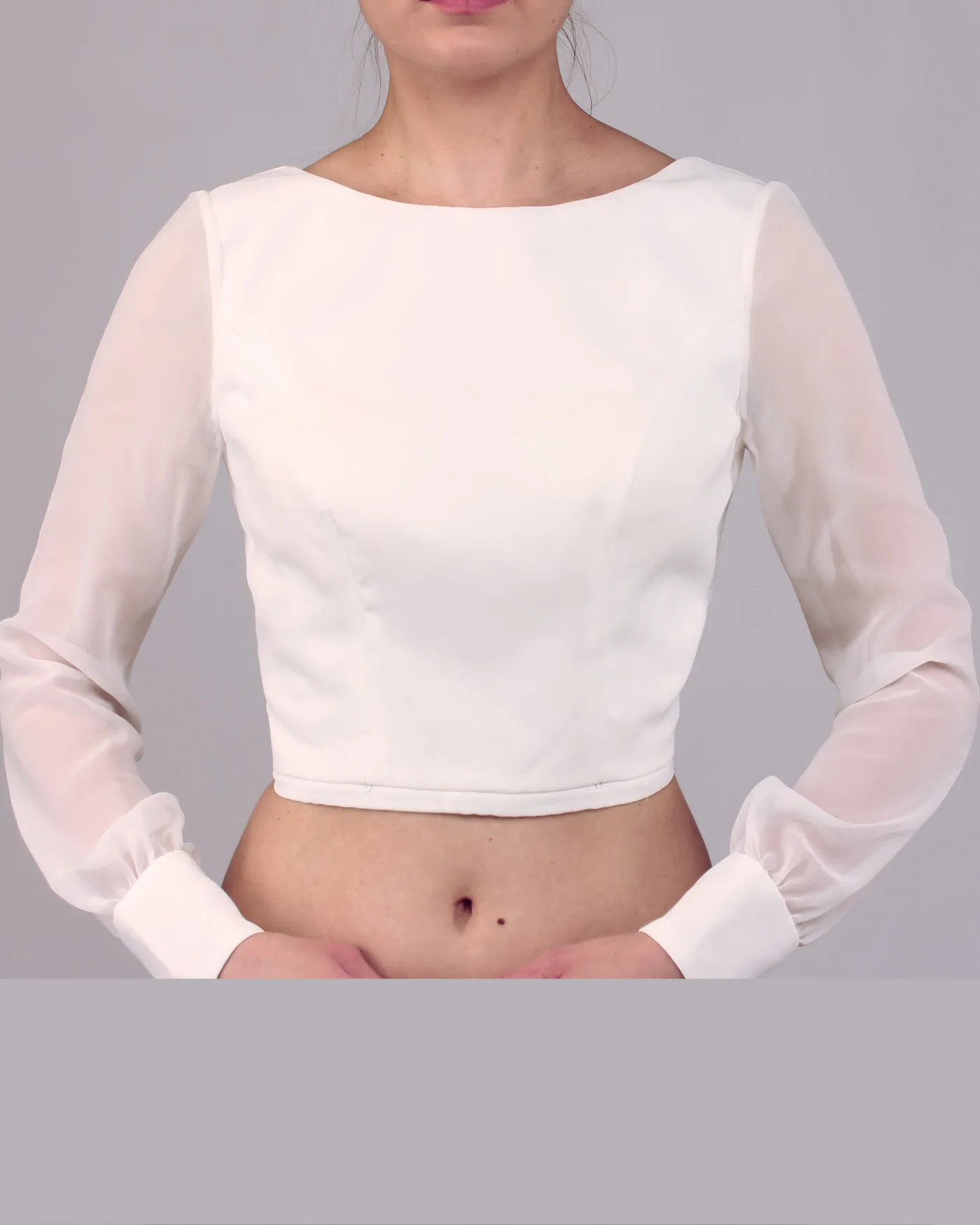 - Long sleeves in lightly transparent chiffon