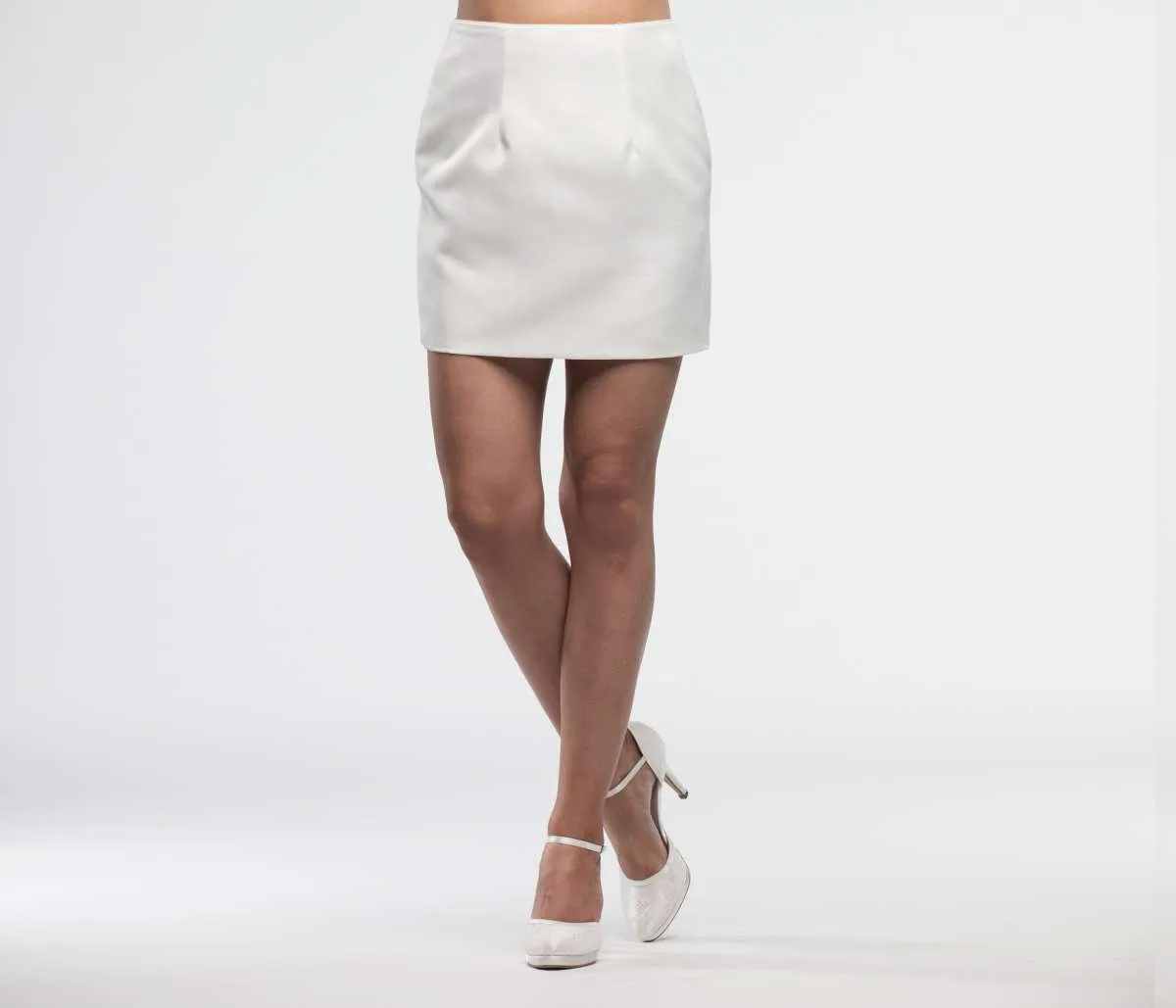 The Rio-40 Basic Skirt is a short 40 cm pencil skirt designed for modern bridal looks, civil weddings, and stylish mix-and-match combinations. Its clean, straight silhouette creates a timeless and elegant appearance while beautifully shaping the figure.