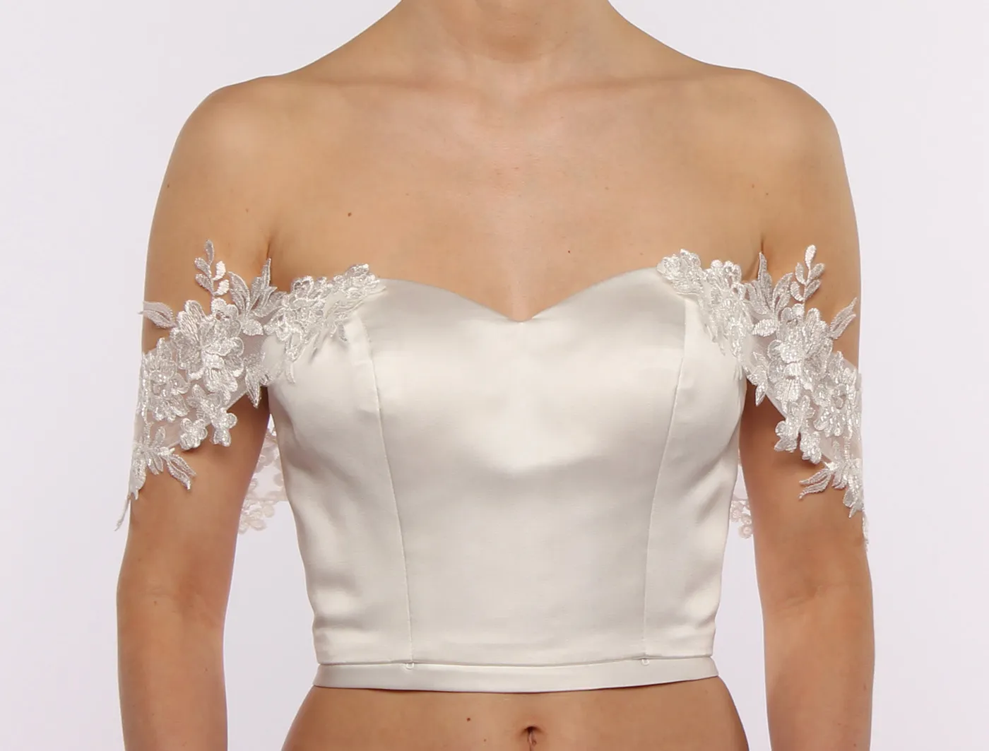 The Sila straps, crafted from soft ivory tulle, offer a graceful accent to your bridal top. Designed to integrate seamlessly with any Basic Top or Make-Up Top in the LeMoos miXme system, they let you personalize your wedding outfit with effortless elegance.