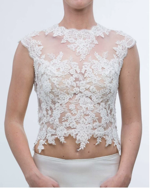 - Make Up Top: Alison (ivory/nude, sequin embroidered tulle, V-neck, slim straps)